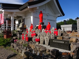 御本尊様、各お地蔵様が、講員の皆様が作られた赤衣を着て頂き、