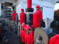 本日は本年本坊で迎える最後のお地蔵さまの日となります。 朝の冷え込みが厳しく境内を見てみると お地蔵様の赤衣に霜が付いていました。 本堂の屋根にも霜が付いており今年一番の冷え込みとなりました。