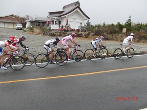 お寺の前の直線は向かい風がキツク、選手同士スリップストリームを使いながら