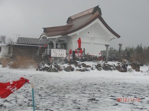 昨夜からの寒波の影響で、賽の磧付近から雪景色となりました。 積雪の影響で、本日は「澄川スキー場入り口から」通行止めとなりました。 賽の磧は一日風雪の天候と荒れ模様でした。雪景色の画像をアップ致します。 合 掌 霊場 賽の磧 金峰山 蔵王寺
