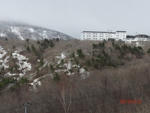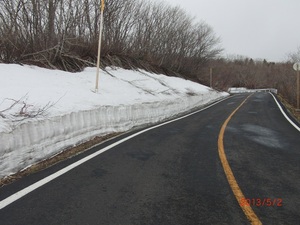 積雪の為、賽の磧駐車場から山頂にかけて通行止め規制がかけられています。