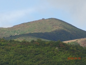 賽の磧からの眺望で山頂付近の紅葉が始まっている様に見えます。