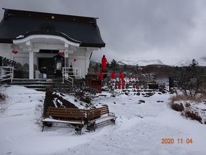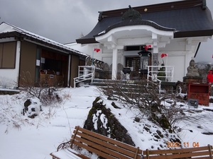 強い寒気が流れ込み賽の磧が雪化粧しました。 本坊手前澄川ゲートが封鎖。通行止めになっています。 賽の磧の天候は風雪。気温1℃。 本日の寺務はお休みとなります。 先程撮影しました本坊の画像をアップ致します。 合 掌 霊場 賽の磧 金峰山 蔵王寺