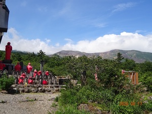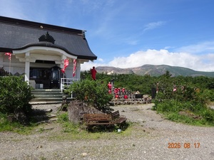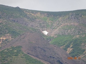 山頂方面に目をやると熊野岳の残雪が残り僅かになっていました。