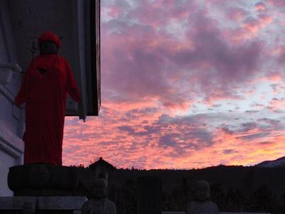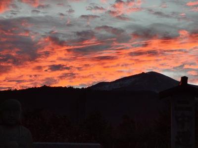 本日は朝から晴天となり刈田岳の雪景色が とても綺麗でした。 朝の気温は1℃と厳しい冷え込みになりましたが、 徐々に風も治まり穏やかな一日となりました。 夕方には寒さを忘れる程の幻想的な夕焼けを堪能する事も出来ました。 画像をアップ致します。 合 掌 靈場 賽の磧 金峰山 蔵王寺