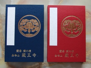 「紺」 「えんじ」 寸法 縦18cm 横12cm 寺紋は高山植物の「こまくさ」です。 本坊札所にご用意致しております。 合 掌 靈場 賽の磧 金峰山 蔵王寺