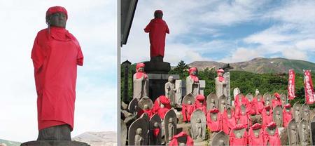 賽の磧延命地蔵菩薩。息災延命の功徳があります。 賽の磧は1250米に位置する山岳寺院ですから、冬季は総丈約4mの延命地蔵尊が隠れてしまうほどの積雪になります。
